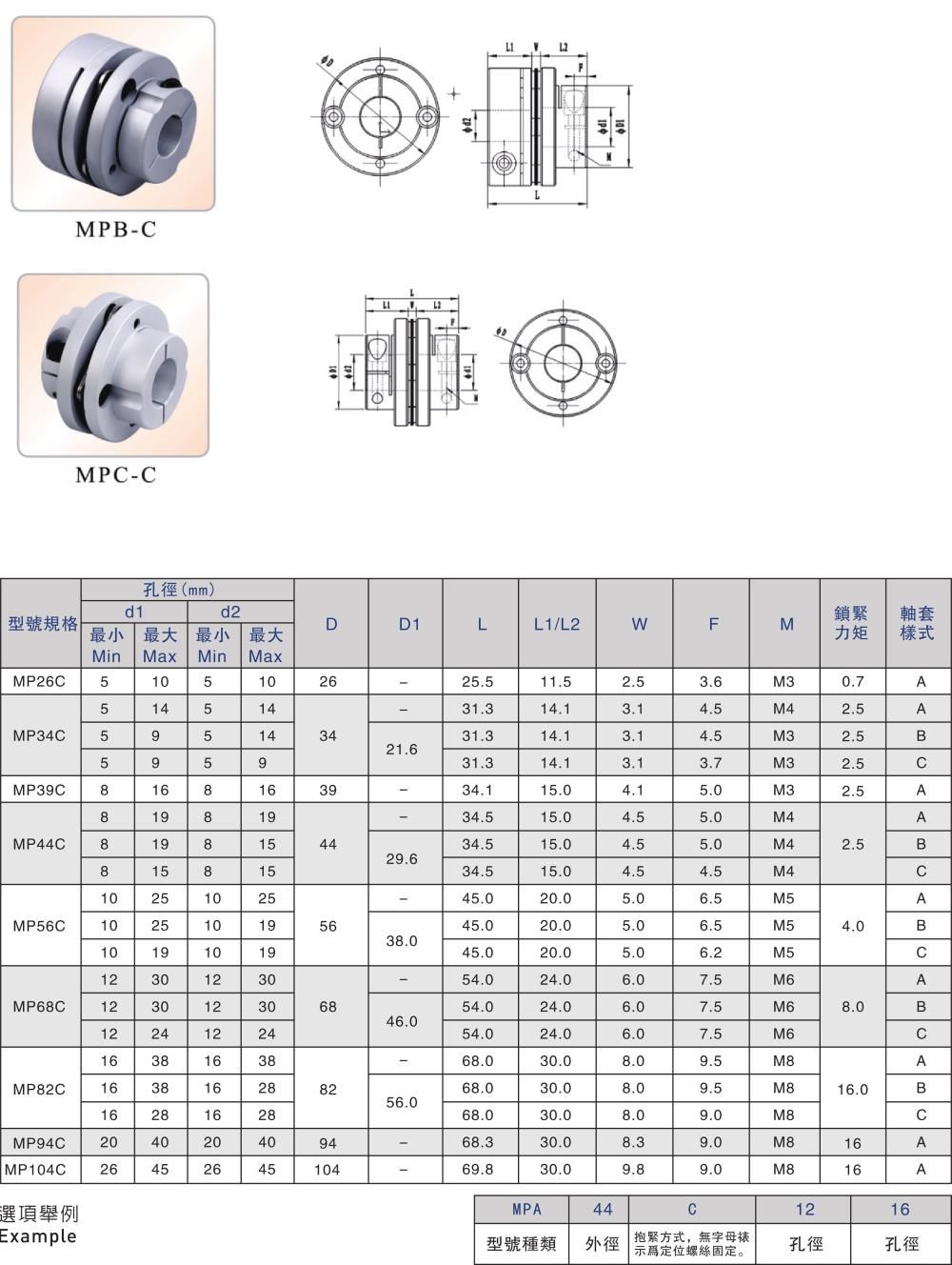 產品名稱:MP-C 不銹鋼彈片聯軸器